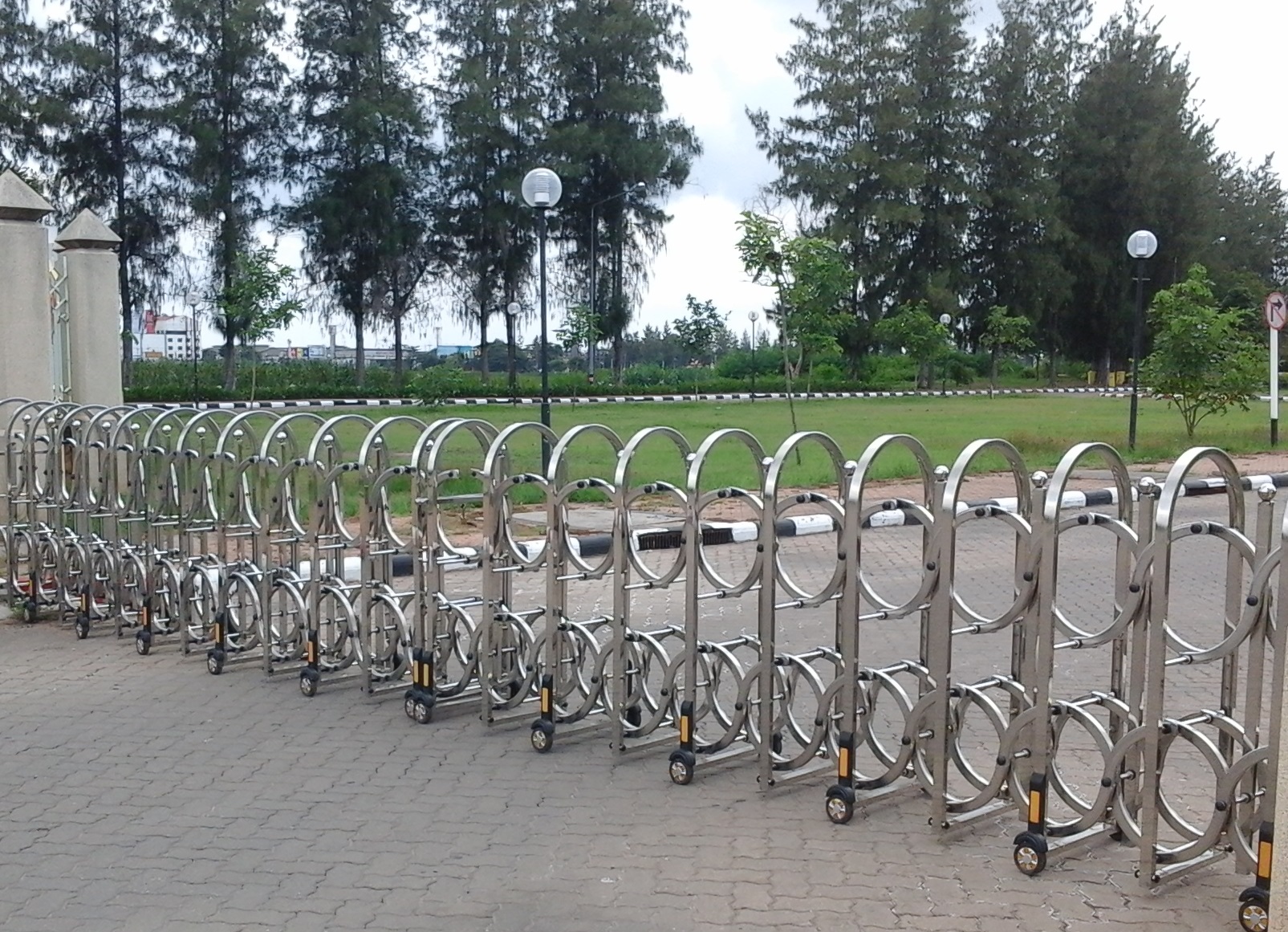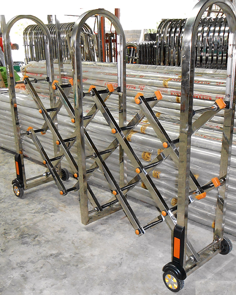 แผงกั้นเหล็กยืดหดได้, แผงยืดหดได้ แบบมีล่้อ