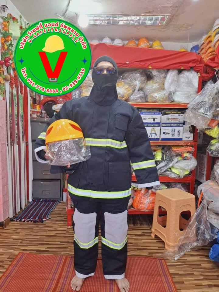 ชุดดับเพลิง ผ้า 3 ชั้น ผ้า FR-COTTON แถบสะท้อนแสงกันไฟ